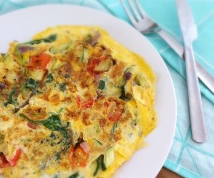 Groentenomelet van spinazie/courgette/ui/tomaat