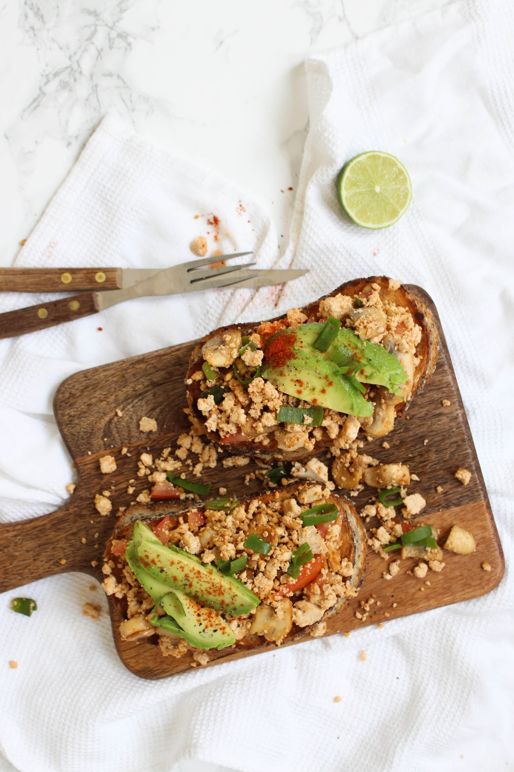 Een heerlijk uitgebreid ontbijt, brunch of lunch. Toast met scrambled tofu, champignons en lente ui. Een perfect gerecht voor in het weekend, wanneer je net even wat meer tijd hebt om iets lekkers te maken. Een lekkere combinatie van smaken, gezond, vullend en helemaal plantaardig.